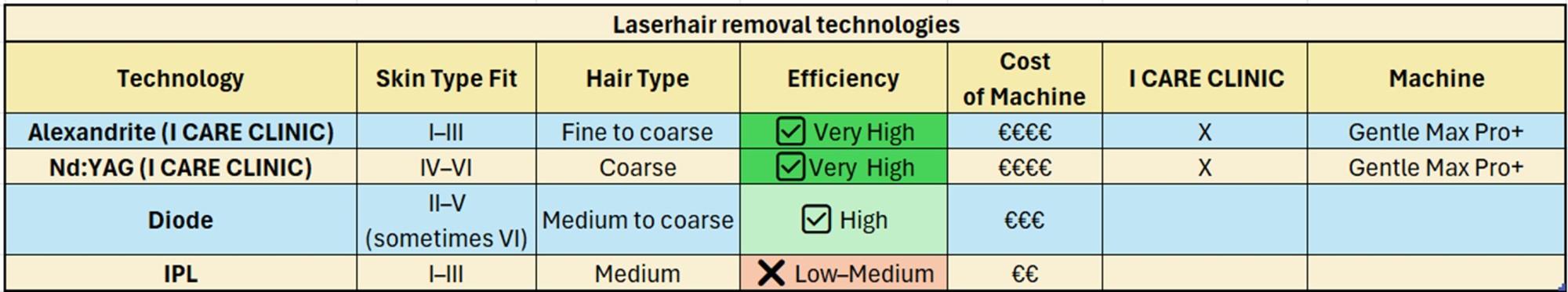 At I CARE CLINIC, we use the GentleMax Pro Plus, recognised worldwide as the benchmark for safe and effective hair removal.